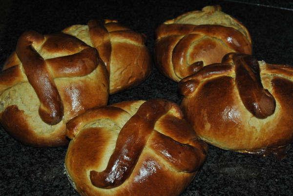 - Para a massa quadruplicada pode-se reduzir uma colher (chá) de fermento e divide-se a massa em 9 bolas, sendo que uma dessas bolas será para formar os rolinhos das decorações de todos os folares.